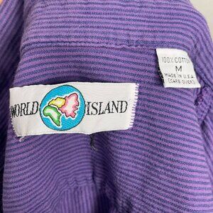 Vintage World Island men's button-down purple striped shirt with short sleeves. 100% Cotton.