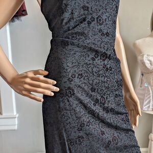 Vintage 90s Byer Too Black Midi Dress Cocktail Floral Glitter Whimsygoth Size M