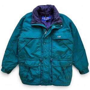 Vintage 90s CB Sports Parka Puffer Jacket Green Purple L Winter Spring Ski Gorp