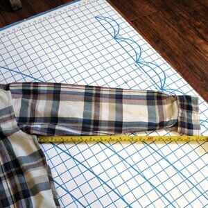Ecru - teal - maroon - beige plaid
