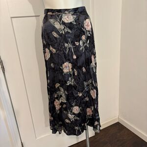 Vintage 90s CLIO size Medium Dark Floral Flowy Boho Silky Satin Maxi Skirt
