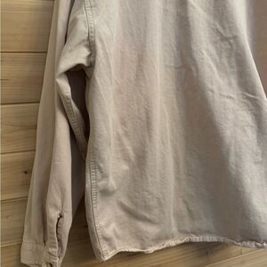 Tan Cotton Button Up Utility Pocket Shirt With Sylvester The Cat, Bugs Bunny & Tweety Bird Embroidered In Pocket. Men’s Size Medium But Is Gender Neutral