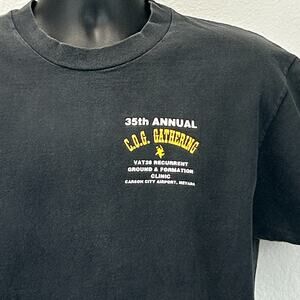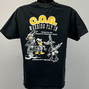 Vintage 90s COG Gathering T-28 Trojan Warbird Fly In T Shirt VAT28 Recurrent Ground & Formation Clinic Gashouse Three Carson City USAF United States Air Force Military Wile E Coyote Donald Duck Black L Large Hanes Single Stitch Graphic Tee
