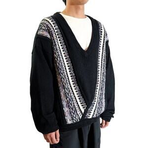 Vintage 90's CONCRETE design V-neck Knit Mixer Sweater Men's Size Large Black