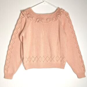 Vintage 90's C.S.L Cherry Stick Ltd Knit Sweater Crotched Neckline Peach