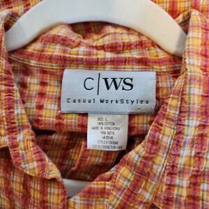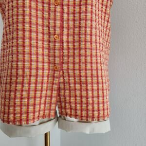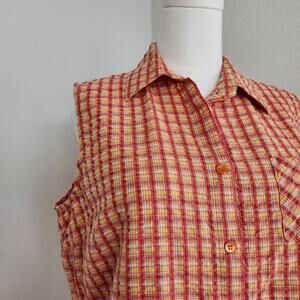 Vintage 90s CWS Casual WorkStyles Red Yellow Plaid Sleeveless Button Down Top L
