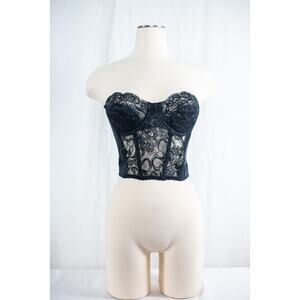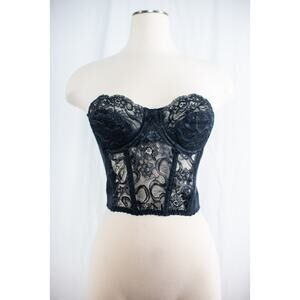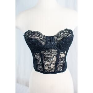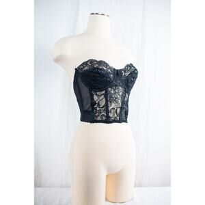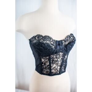 Vintage 90s Cabernet Black Lace Bustier Corset Top Lingerie, 36B Romantic Gothic