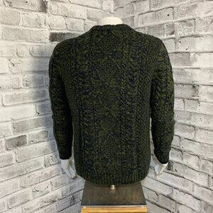 Vintage 90s Cable Knit Fisherman Chunky Sweater Large Black Olive Green Preppy
