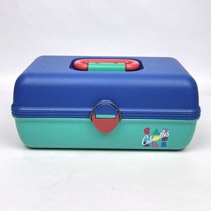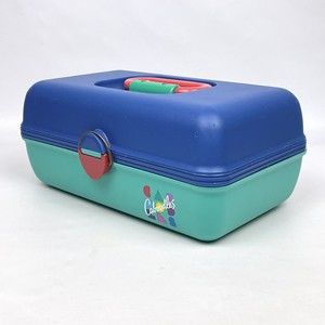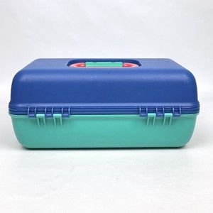 Vintage 90s Caboodles Makeup Carrying Case Organizer Model 2602 Blue Teal Pink