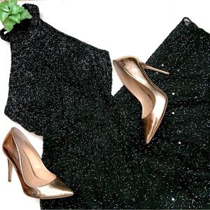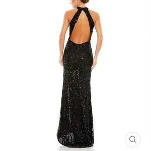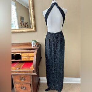 Vintage 90's Cache Black Silk Beaded Sequin Halter Gown Maxi Dress Size Large