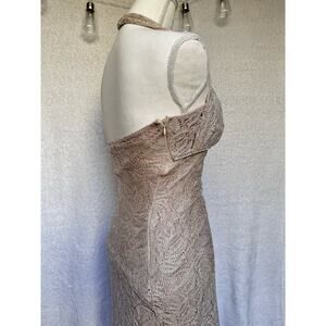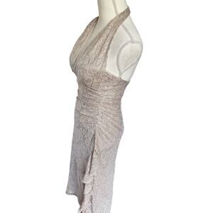 Vintage 90's Cach'e Gold Sparkly Halter Side Ruffle Maxi Dress Women's Small 4