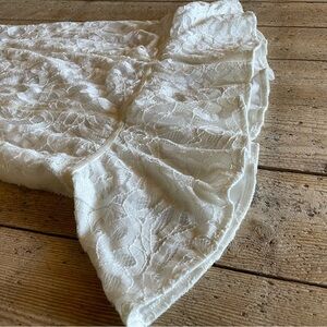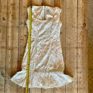 Gorgeous vintage Cache lace dress from the 90s—size 4. This white beauty features a square neckline, short cap sleeves, and a stunning floral lace overlay. Fitted through the bodice with a little bit of stretch and a flared hemline for a flattering silhouette. Perfect for bridal showers, date nights, or vintage lovers. Excellent preowned condition. A dreamy piece that’s both elegant and unique.
