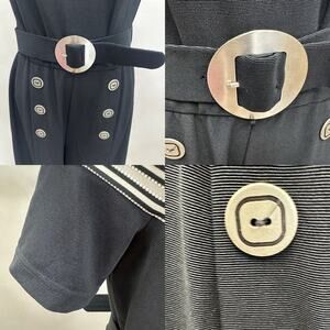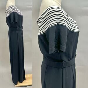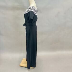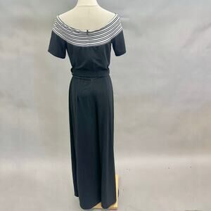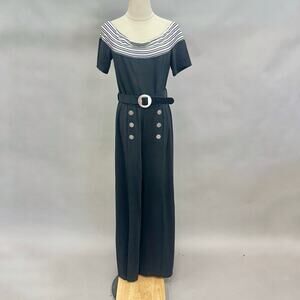 Vintage 90s Cache black slinky sailor nautical jumpsuit size 10 wide slit leg