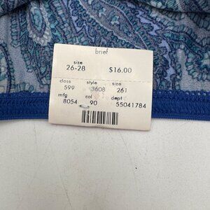 Vintage 90's Cacique brief panty in blue paisley. New old stock with a shiny, glossy wet look, perfect for a standout addition to your collection. Sexy sensual satin brief