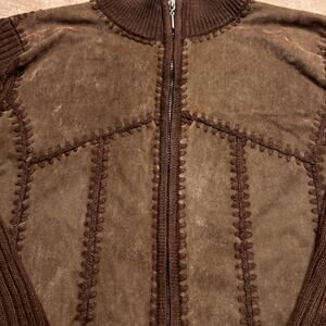 Vintage 90s Cal Fashion Brown Patchwork Panel Stitched Knit Zip Up Jacket Grunge