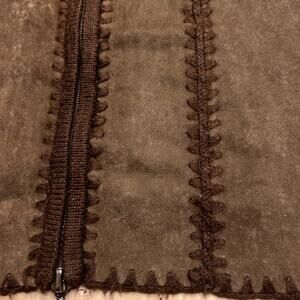 Vintage 90s Cal Fashion Brown Patchwork Panel Stitch Knit Zip Up Jacket