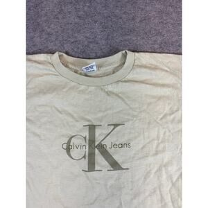 Vintage 90s Calvin Klein T-Shirt Mens Medium Gray Graphic Logo Retro Streetwear