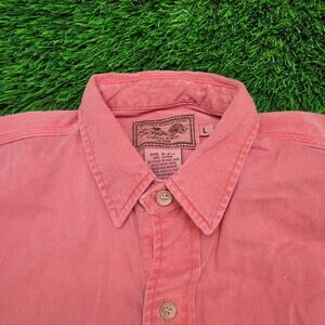 Vintage 90s Calvin-Klein Faded Coral Pink Button Up Shirt Large 23x32 Made In USA Cotton Twill Garment Dyed Dual Check Pockets Oversized Baggy Grunge Normcore Safari Shirt Hiking Shirt