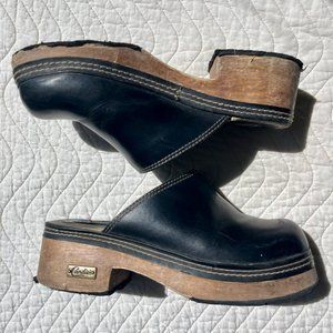 Vintage 90s Candie’s Platform Clogs - Black Leather - Size 7
