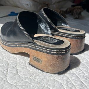 Super cute leather clogs with wood sole! So 70s boho hippie! Made in the 90s