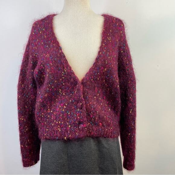 Vintage 90s Cape Isle Knitters Fuzzy Mohair Confetti Cardigan Sweater slouchy S