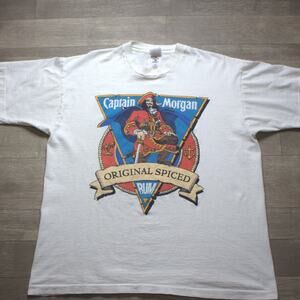Pre-Owned Vintage 90s Captain Morgan Spiced Rum T-Shirt Tee Single Stitch Size XL. Light Stain On Front Of Shirt And Small Pin Sized Hole On Right Chest Area, Right Armpit Otherwise In Good Condition Refer To Photos. If You Have Any Questions Feel Free To Send Me A Message Thank You.