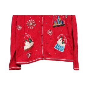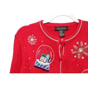 Vintage 90s Cardigan Sweater Medium Embroidered Sequin Beaded Holiday Winter