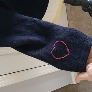 The style savvy lady will love this comfy Christopher & Banks Cardigan Sweater! This classic design features a navy blue fabric in a 55% Ramie/45%Cotton blend with a unique hand embroidered red, white and blue patriotic stars and stripes pattern. The sweater is finished with charming star buttons and a rounded neckline. Get your wardrobe up to date with this stylish Christopher & Banks Cardigan in size Large!