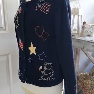 Vintage 90s Cardigan Sweater Patriotic Stars & Stripes Flag Embroidered