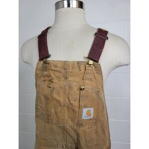 Vintage 90s Carhartt Mens Duck Canvas Bib Overalls R01 Brn 42x32