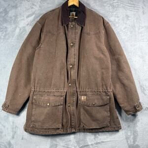 Vintage 90's Carhartt Ranch Chore Coat Blanket Lined Mens X Large Brown C52 CHT