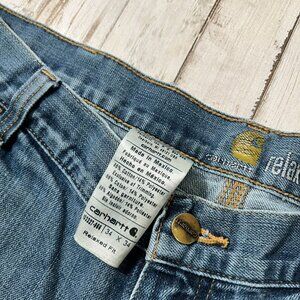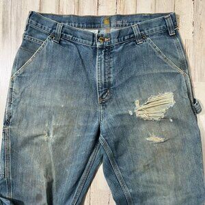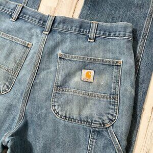 Vintage 90s Carhartt Thrashed Blue Denim Carpenter Canva Cargos Mens 34 x 34