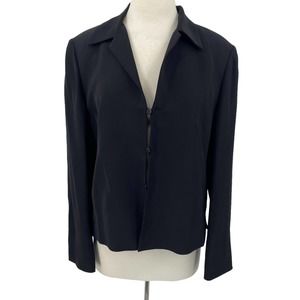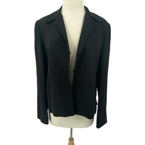 Vintage 90s Carlisle Silk Blazer Button Up Front Split Hem Cuffs Black W…