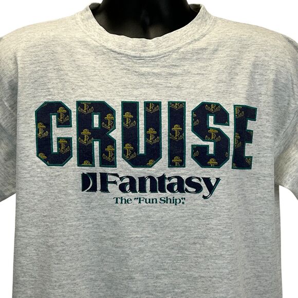 Vintage Carnival Cruise Line Fantasy T Shirt Mens Large The Fun Ship Cruise Liner Travel Tourist Tourism Nautical 90s Gray Graphic Tee