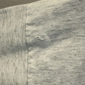 Has some spots and a couple tiny pinholes has been patched from the inside. The holes should not spread further and skin will not show through. No other flaws noticed. Missing tag but I feel it measures similar to a Large. Check measurements to ensure fit. See photos.