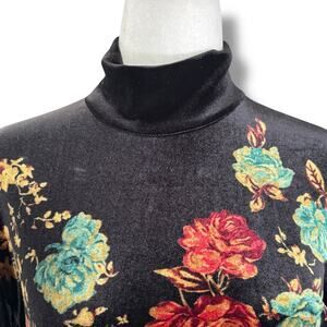 Vintage 90s Carole Little Black Velvet Dark Floral Maxi Dress Mock Neck Romantic