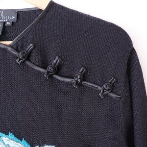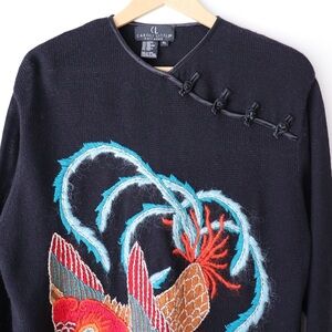Vintage 90's Carole Little Embroidered Asian Bird Wool Blend Artsy Sweater XL