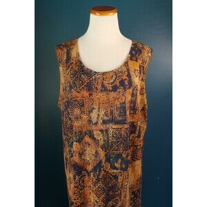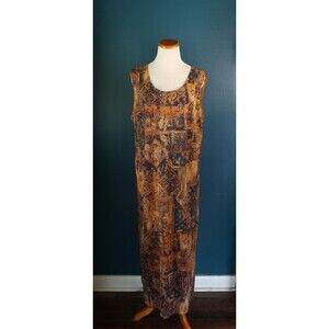 Vintage 90s Carolina Blues Sleeveless Lined Maxi Plus Dress Maximalist Artsy 20W
