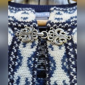 This is a very cozy and comfortable wool sweater make with a great pattern that includes little snowflakes, floral shapes and tiny prints.