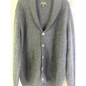 Vintage 90s Cashmere Shawl Collar Cardigan Sweater Gray Dad Grunge