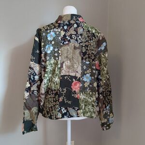 Vintage Casual Studio quilted jacket. patchwork. Floral, rose, foliage print. Painted buttons. Lined. Art to wear/wearable art. Cottagecore. Jacket is in great vintage condition.