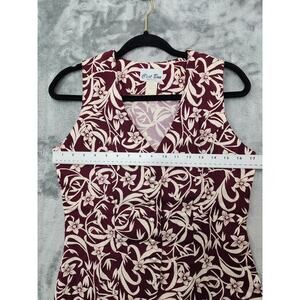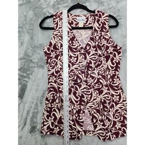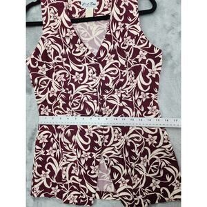 Vintage 90s C'est Bon Floral Sleeveless Long Line Top Size S Red Pearl Buttons