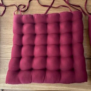 Vintage 90s Chair Cushions with Back Ties - Set of Four - Red - Approximately 17" w x 16" d