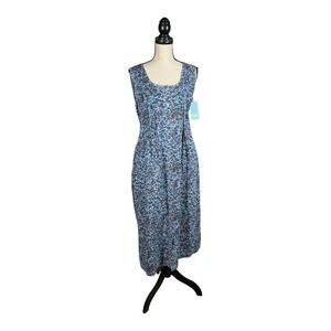 Vintage 90’s Capacity Chambray Floral Print Jumper Dress Deadstock New With Tags Size Medium. Has micro pleated front bodice. Full button up front. Waist tie back. Two front pockets. 100% cotton. Measures approximately 19 1/2” armpit to armpit, and 50” in length. New with tags.