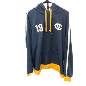 Comfortable and stylish Champion hoodie in blue and yellow. Made with a cotton/polyester blend, this 3XL hoodie offers durability and warmth.