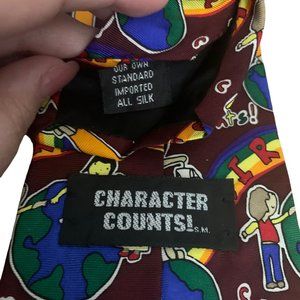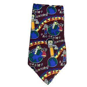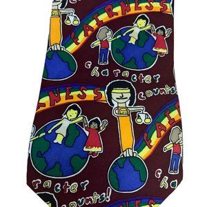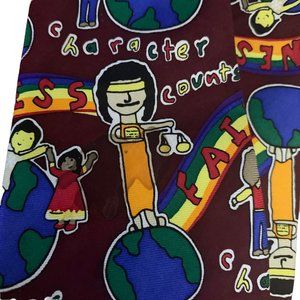 Vintage 90s Character Counts Fairness Silk Tie Maroon Red 3.75 Rainbow Necktie