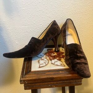 Vintage 90s Charles Jourdan CJBIS Leather Brown Velvet Slip On Pumps Heels 5.5