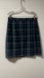 Super cute navy blue and green plaid wool blend true wrap skirt. Button and hook & eye closures at waist, mini length, lined.