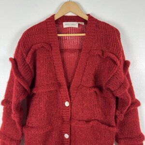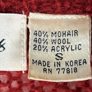 Vintage 90s Chelsea Young Red Chunky Knit Mohair Cardigan Sweater Sz S Oversized