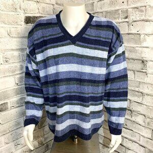 Vintage 90s Cherokee Blue Striped V-Neck Sweater
